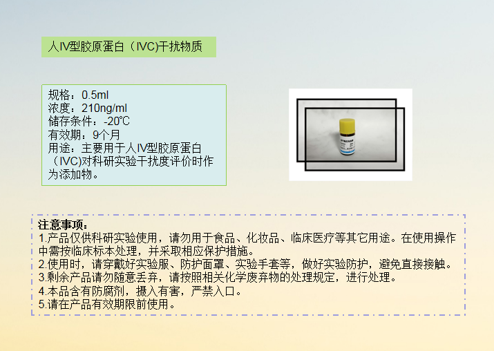 產(chǎn)品名稱:人IV型膠原蛋白(IVC)干擾物質(zhì)